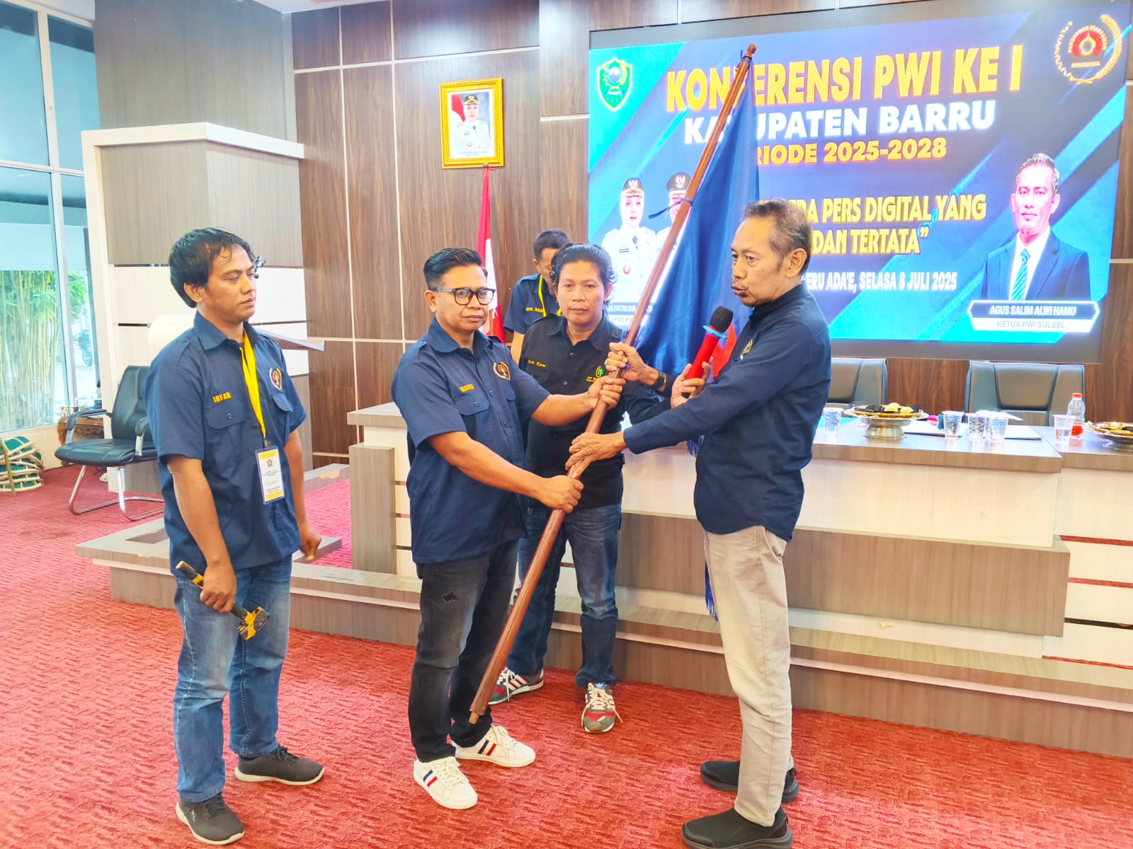 Puncak acara ditandai dengan penyerahan bendera pataka dan palu sidang oleh Manaf Rahman, mewakili Ketua PWI Provinsi Sulsel, kepada Ahmadi Kalub sebagai simbol amanah dan tanggung jawab untuk menjalankan program kerja selama tiga tahun ke depan.