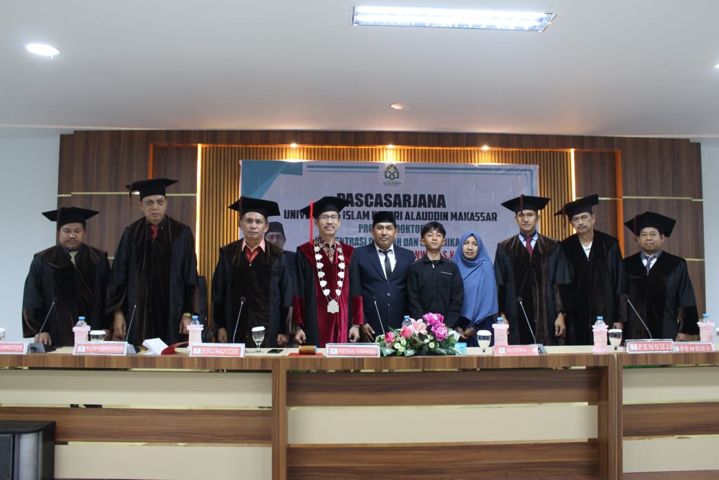 Sidang dipimpin oleh Direktur Pascasarjana UIN Alauddin Makassar, Prof. Dr. Abustani Ilyas, M.Ag., yang juga bertindak sebagai penguji utama. Dalam pengukuhannya, Prof. Abustani menyampaikan pesan penuh tanggung jawab: “Kini Anda bagian dari alumni doktor UIN Alauddin ke-1.442. Jaga nama baik kampus, harumkan dengan karya dan akhlak,” ucapnya.