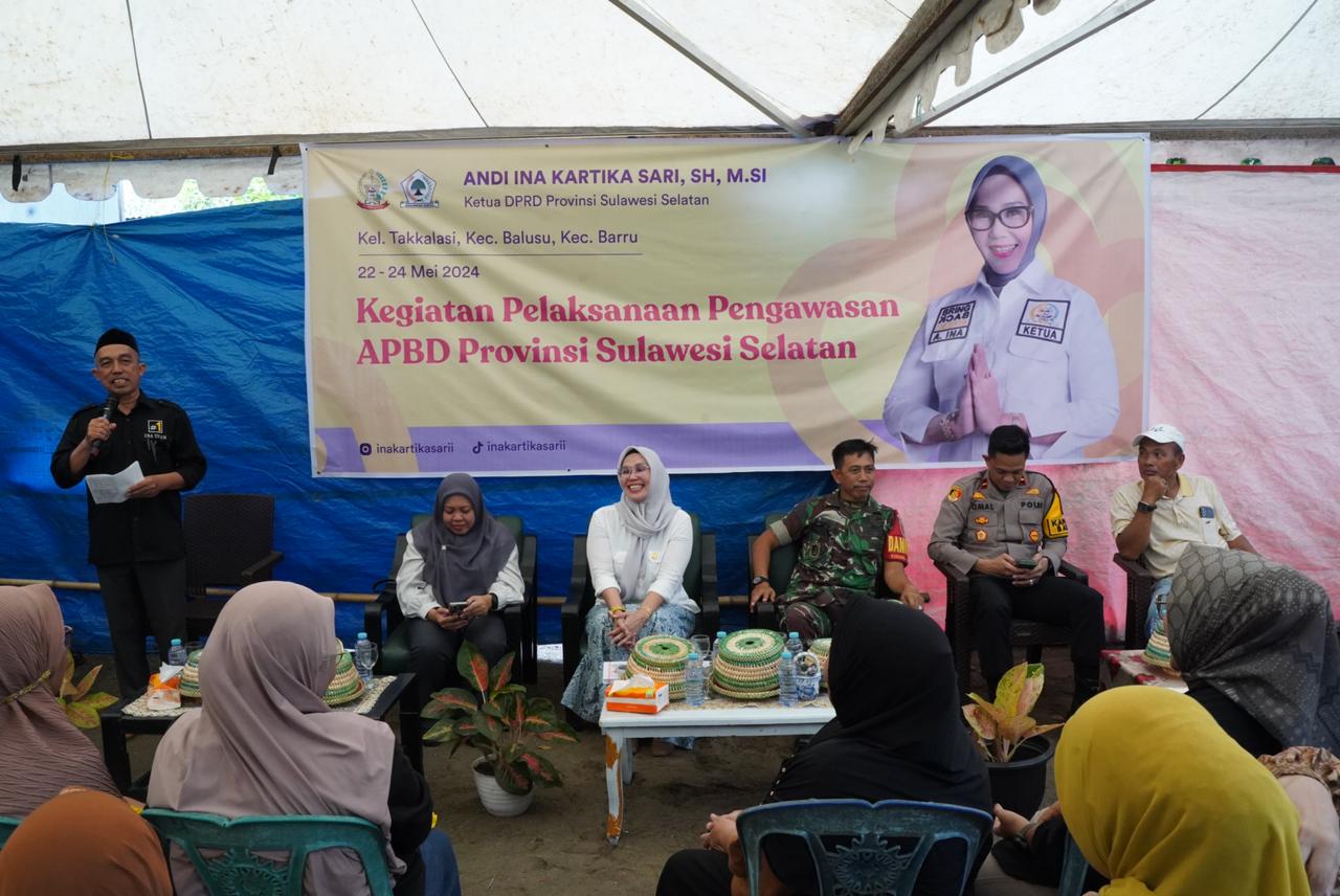 PAREPARE — Usai kunjungan di Desa Galung, Ketua DPRD Sul-Sel A.Ina Kartika Sari,SH melanjutkan kunjungan di Dusun Pude’E Kelurahan Takkalasi Kecamatan Balusu, Rabu 22/05/2024