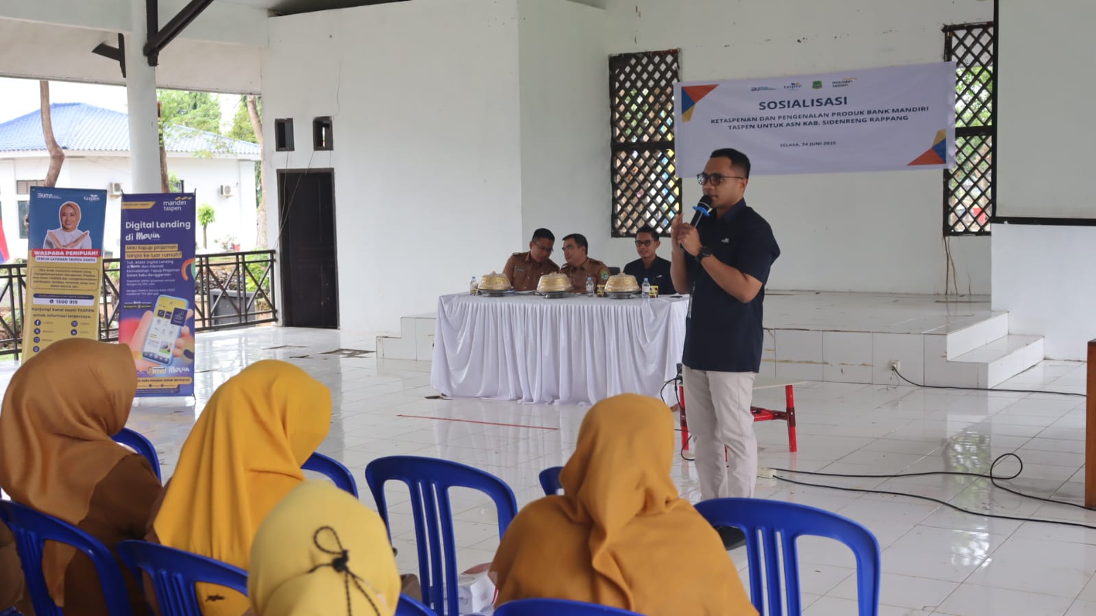 SIDRAP, VOICESULSEL — Pemerintah Kabupaten Sidenreng Rappang (Sidrap) bekerja sama dengan PT Taspen (Persero) dan Bank Mandiri Taspen menggelar Sosialisasi Produk Layanan Ketaspenan dan Perbankan, Selasa (24/6/2025), di Baruga Kompleks SKPD Sidrap.