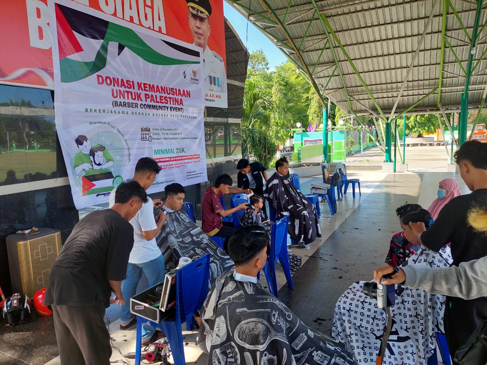 Para Barber Profesional ini melakukan event dengan cara mencukur rambut secara massal dengan seluruh perolehan hasil cukur rambut didonasikan untuk Palestina.