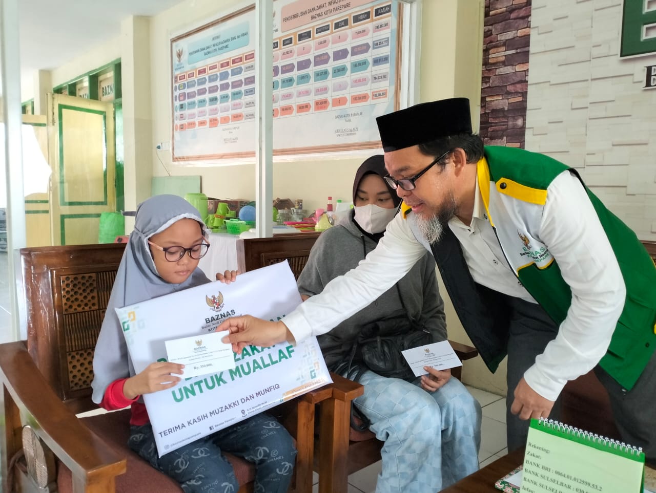 Sejumlah 20 orang muallaf dari berbagai latar belakang keyakinan sebelumnya mendapat pencerahan oleh Ketua Baznas Kota Parepare Saiful, S.Sos.I,M.Pd dalam Taushiyah singkatnya Saiful menyapa para muallaf ini “Selamat datang di Kantor Baznas bapak,ibu saudaraku se Iman dan se Aqidah, Baznas sebagai lembaga yang kerkecimpung dalam penghimpun dan pemberdayaan Zakat memiliki tanggung jawab moral dan Sosial dalam pembinaan para Muallaf sebagaimana firman Allah dalam al Qur’an surah at Taubah ayat 60 bahwa muallaf disebutkan dalam urutan ke empat dari delapan Asnaf yang berhak menerima Zakat….al Muallafatu Quluubuhum (orang-orang yang dilembutkan hatinya).