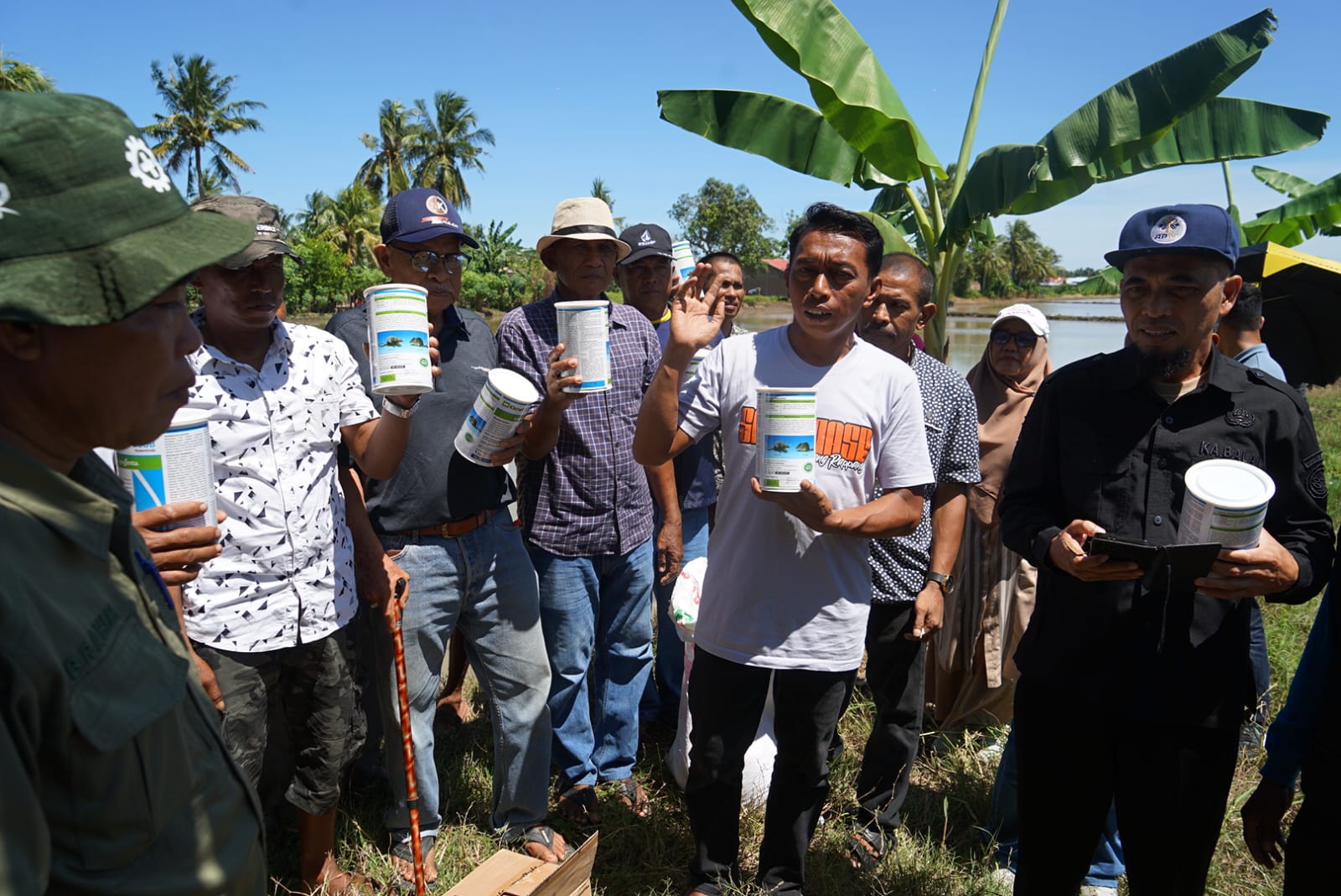 Tanpa canggung, Bupati Syaharuddin menggulung celana panjang dan menebar benih tanpa alas kaki. Aksinya disaksikan para petani, tokoh masyarakat, dan warga setempat.
