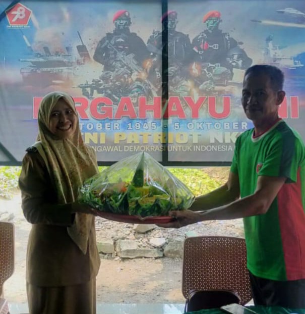 Camat Barru Hj A. Himanida SSTP MSi memberikan kejutan berupa nasi tumpeng sebagai tanda apresiasi terhadap ke Danramil Barru atas hari jadi TNI ke 78