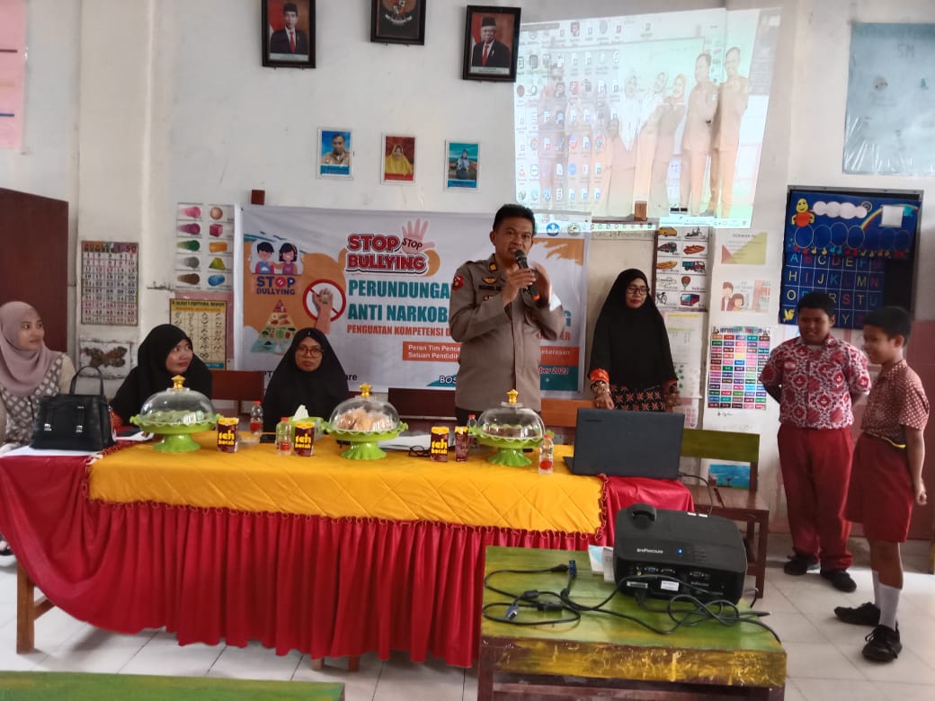 Di hadapan 95 siswa – siswi SD 86, Kapolsek Ujung memberikan pengetahuan dampak negatif dari Perundungan atau praktek bully membully.