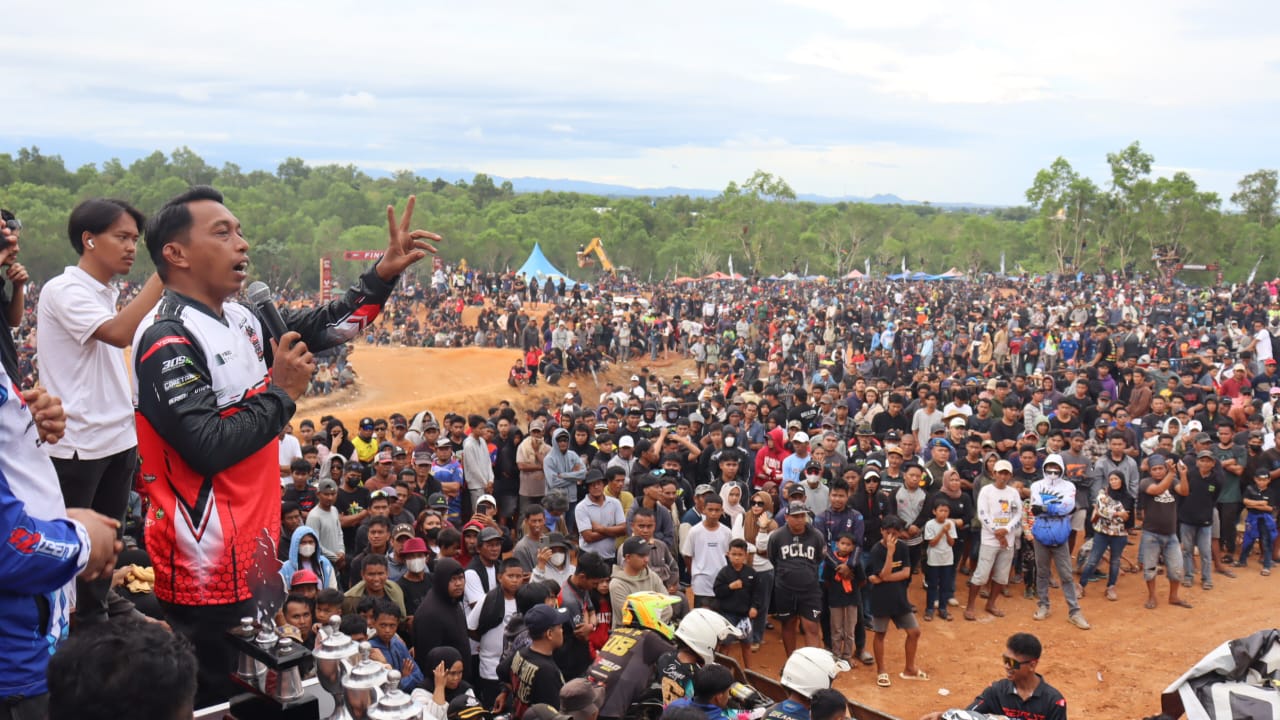 SIDRAP, VOICESULSEL — Bupati Sidrap, Syaharuddin Alrif, menunjukkan komitmen nyata dalam mendukung olahraga otomotif dengan menyaksikan langsung Kejuaraan Daerah (Kejurda) Seri 2 Grasstrack dan Motocross di Sirkuit Lasiwala, Kecamatan Pitu Riawa.