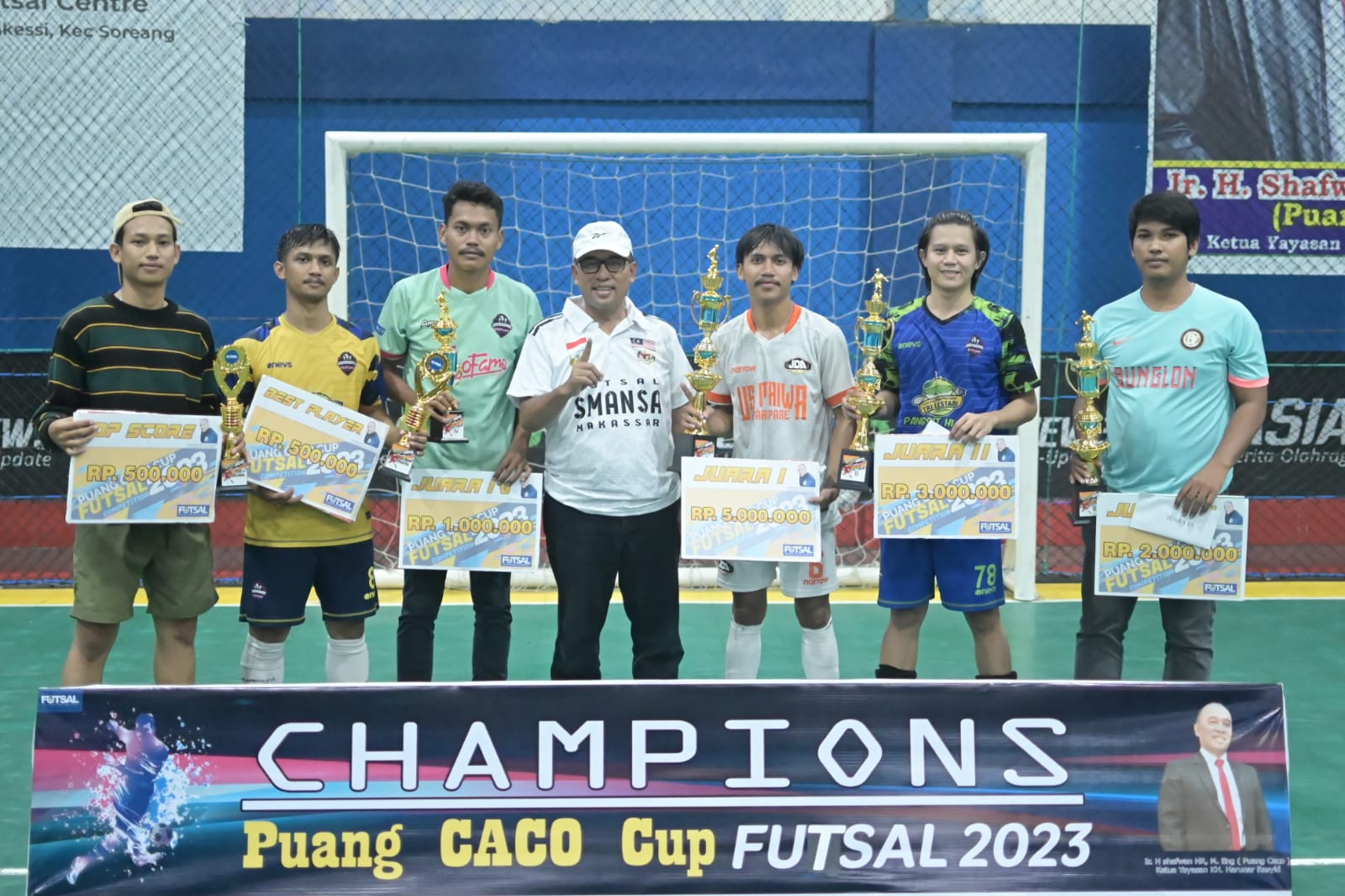 H. Shafwan (Puang Caco) bersama para kandidat juara Futsal Puang Caco Cup 2023