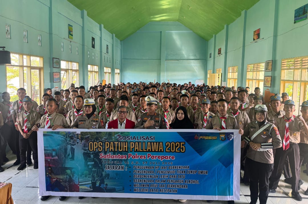 Parepare – Dalam rangkaian Operasi Patuh Pallawa 2025, Satuan Lalu Lintas Polres Parepare terus mengedepankan sisi edukatif kepada masyarakat, khususnya kalangan pelajar. Pada hari kelima pelaksanaan operasi ini, Kasat Lantas Polres Parepare, AKP Muh. Arsyad, memberikan pembekalan etika dan tata tertib berlalu lintas kepada siswa SMA Negeri 1 Parepare. Jumat (18/7/2025),
