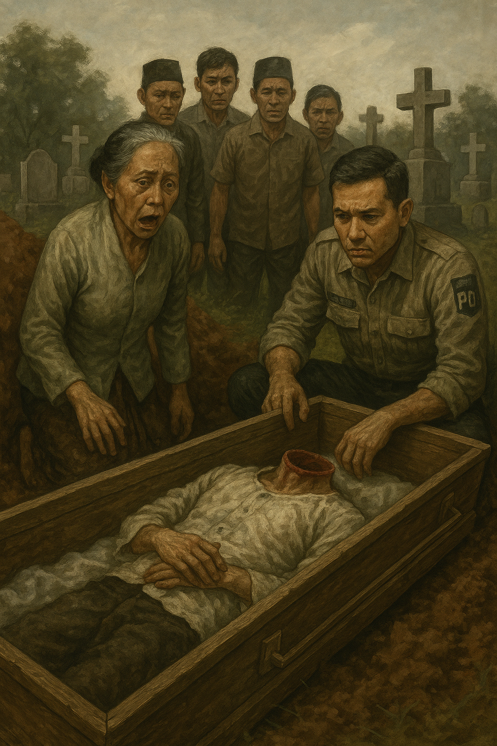 Warga sebuah desa di Kecamatan Putihan, Jawa Tengah, dikejutkan dengan temuan mengerikan di area pemakaman umum. Sebuah makam milik pemuda bernama Janur (23) yang meninggal akibat kecelakaan sebulan lalu, ditemukan sudah dibongkar dan ditimbun ulang dengan kondisi tidak wajar.