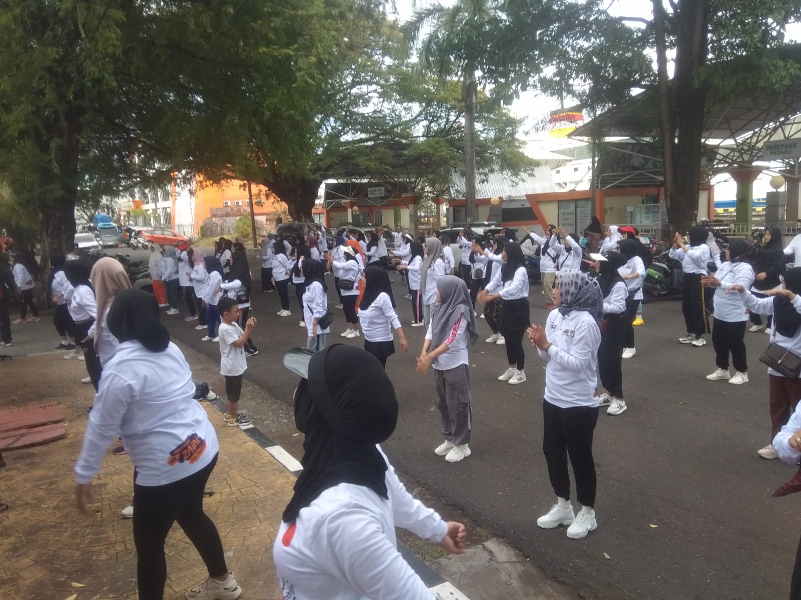 Ratusan Srikandi MZ Teman’ta meramaikan posko pemenangan MZ dengan kampanye sehat melalui olahraga bersama