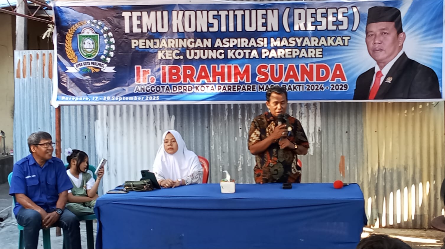 PAREPARE, VOICESULSEL — Anggota DPRD Kota Parepare, H. Ibrahim Suanda, menggelar reses di Jalan Kijang, Kelurahan Labukkang, Kecamatan Ujung, Kamis (18/9/2025). Legislator dari PAN itu bertemu ratusan konstituen untuk menyerap aspirasi masyarakat, khususnya terkait persoalan Pajak Bumi dan Bangunan (PBB).