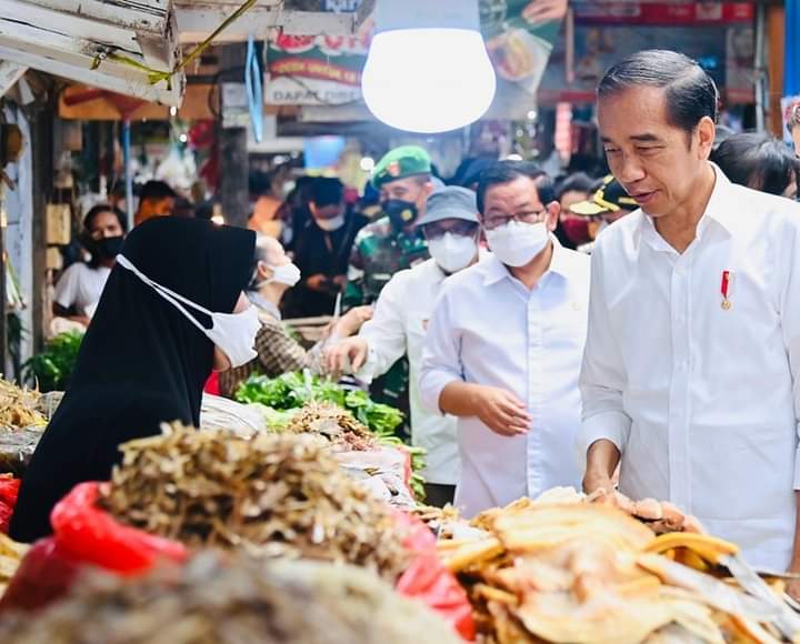 VOICESULSEL — Ratusan warga menyambut kedatangan presiden Jokowi di Pasar Klandasan Balikpapan, Selasa 25 Oktober. Warga memanggil nama pak Jokowi saat RI 1 itu sibuk berbagi paket bantuan sosial kepada warga dan pedagang kaki lima.