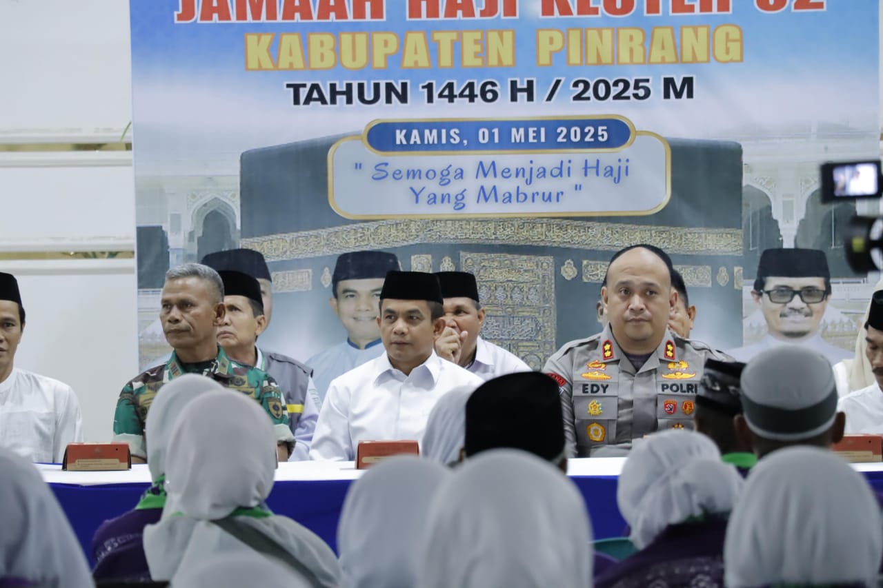 PINRANG, VOICESULSEL — Kapolres Pinrang AKBP Edy Sabhara Mangga Barani, S.I.K menghadiri kegiatan pelepasan rombongan Jamaah Calon Haji (JCH) Kloter 2 Kabupaten Pinrang yang digelar di Masjid Agung Al-Munawwir, Kecamatan Watang Sawitto, Kamis (1/5).