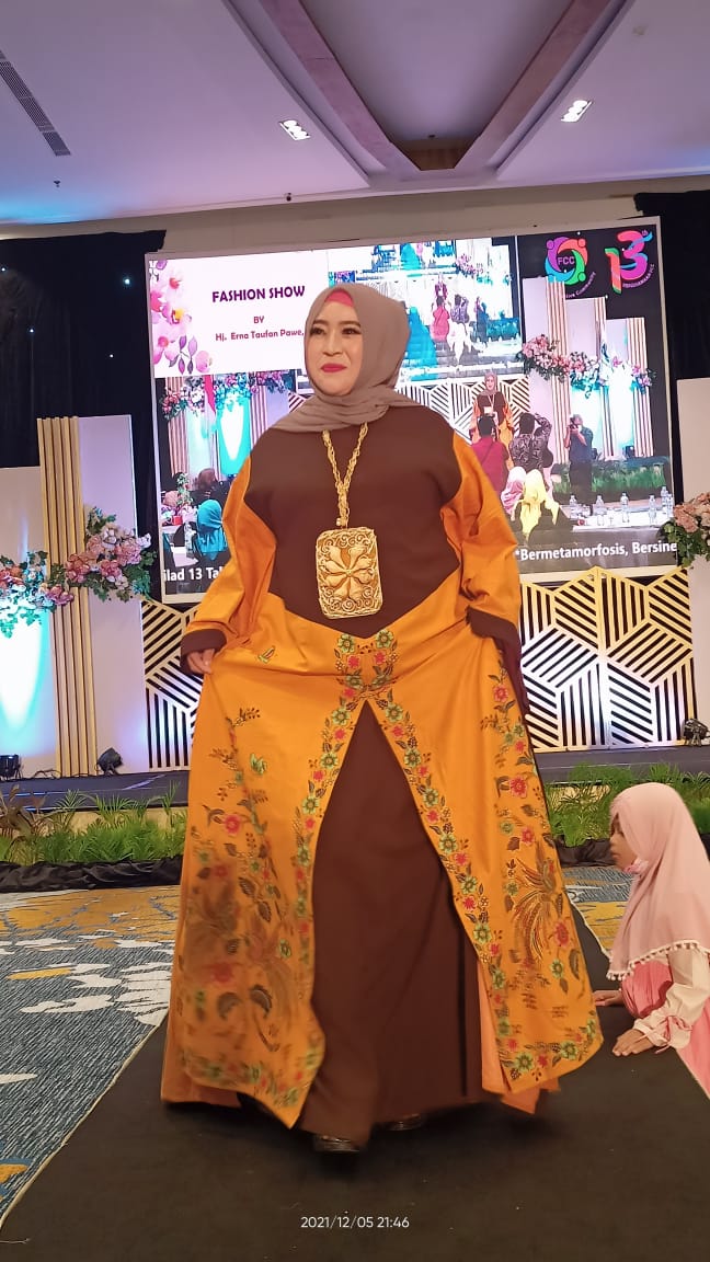 MAKASSAR — Family of Crrative Community (FCC) kembali mempopulerkan baju rancangan desainer ternama, Hj Erna Rasyid Taufan. Baju etnik Islami bermotif ciri khas Parepare dibalut limbah kerang-kerangan ini dipamerkan dalam fashion show. Fashion show sebagai penanda kemeriahan malam puncak peringatan milad atau hari ulang tahun FCC ke-13 ini digelar di Hotel Claro, Kota Makassar, Minggu, (5/12/2021).