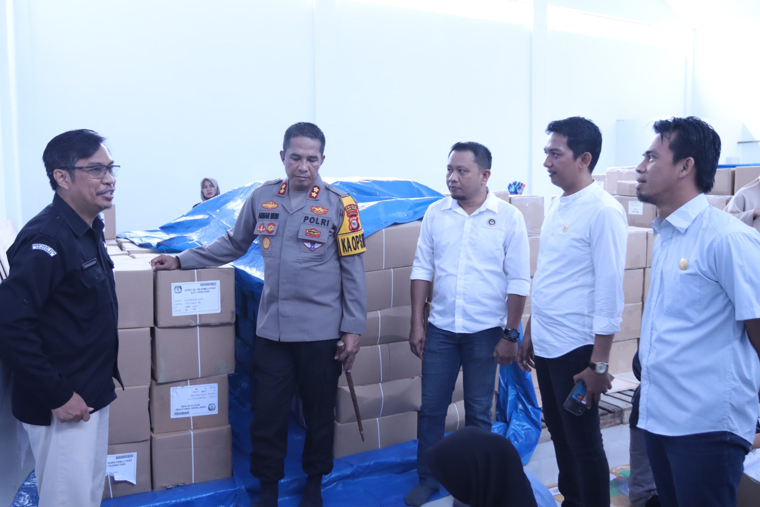 Kunjungan Arman Muis di gudang logistik KPU hari ini (10/1/2024) mengikutsertakan Karendal Ops Mantap Brata Polres Parepare Kompol Burhanuddin dan Kasat Intelkam Iptu Adam Sjam.