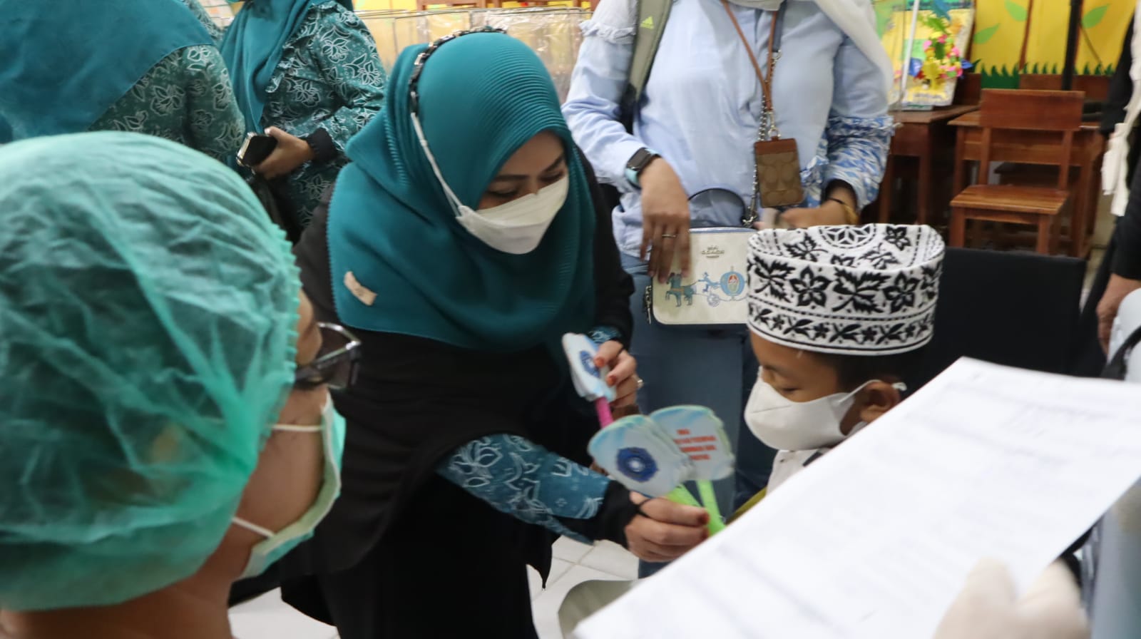meninjau dan memotivasi anak yang akan divaksin di beberapa Sekolah Dasar Kota Parepare,” ujar Wahyuni Chalik, Sekretaris TP PKK Kota Parepare.