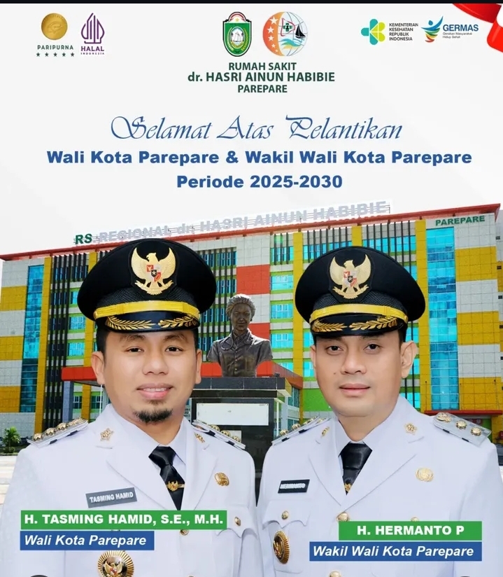 Dalam unggahan melalui media sosial resmi IG rsdrhasriainunhabibieparepare, Mahyuddin bersama jajarannya mengirimkan ucapan selamat untuk pasangan Walikota Parepare terpilih, Tasming Hamid dan Hermanto.