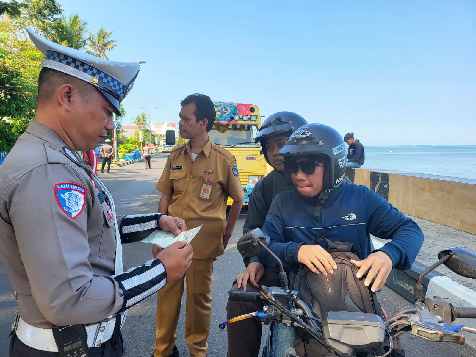 Dalam giat tersebut, petugas tidak hanya melakukan penindakan, tetapi juga mengutamakan pendekatan humanis dengan memberikan sosialisasi dan imbauan langsung kepada pengguna jalan. Brosur informasi terkait Operasi Patuh Pallawa turut dibagikan sebagai upaya edukasi tertib berlalu lintas.