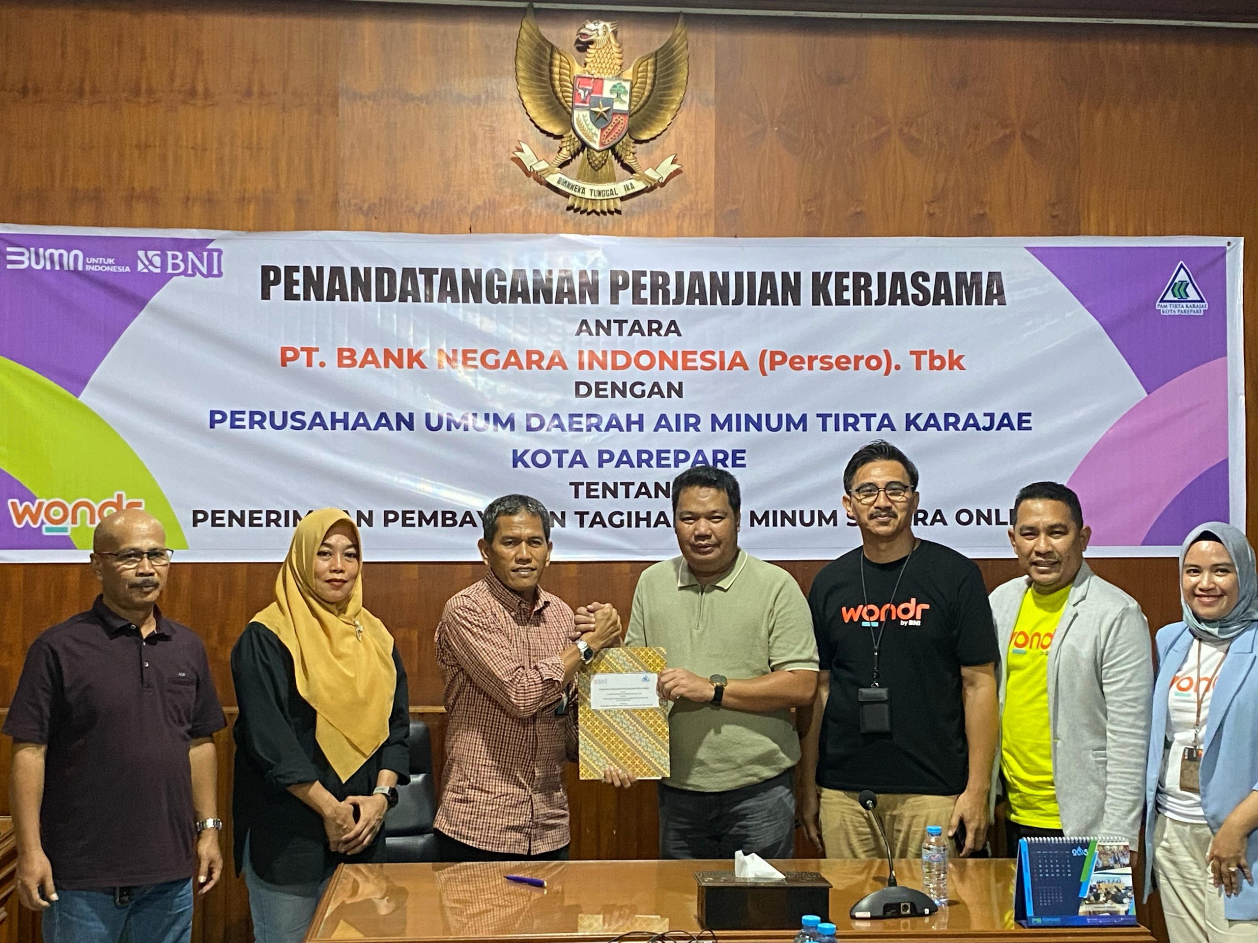 PAREPARE, VOICESULSEL – Pelanggan Perusahaan Air Minum (PAM) Tirta Karajae Kota Parepare kini dapat menikmati kemudahan dalam membayar tagihan air mereka secara online melalui layanan inovatif BNI, Wondr by BNI. Hal ini diwujudkan melalui penandatanganan Perjanjian Kerja Sama antara PDAM Tirta Karajae Kota Parepare dan BNI Kantor Cabang (KC) Parepare yang berlangsung, Jumat 28 Februari 2025.