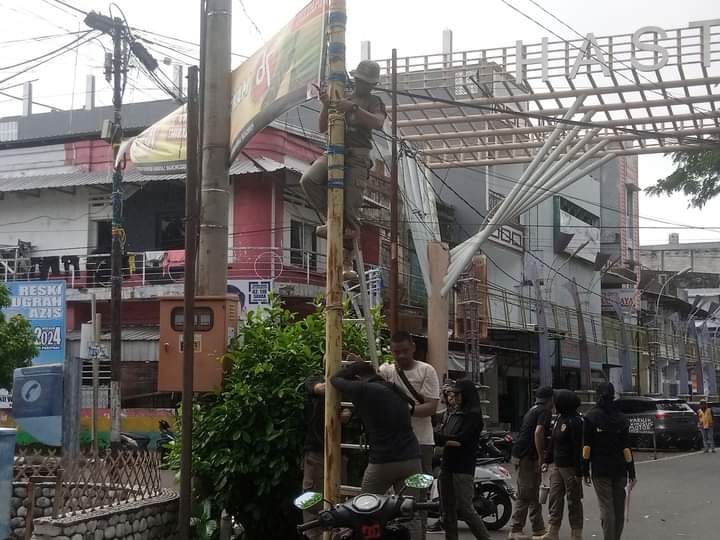 Petugas Satpol PP menyasar jalan Bau Massepe dan Mattirotasi mendapati puluhan baligho maupun benner dengan berbagai ukuran, ditertibkan, Selasa (28/5/2024)
