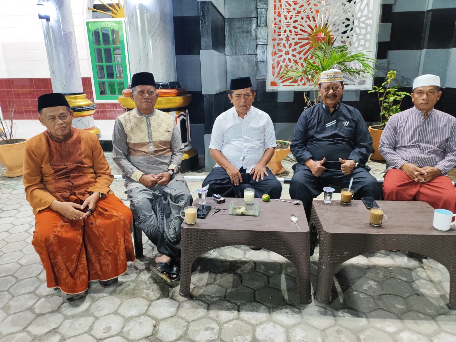 Imam Masjid Rahmatan LumpuE Drs. H. Zainal Arifin, MA dan Ketua Umum Pengurus Masjid Jami Rahmatan LumpuE H. Baharuddin Hasyim (satu & dua dari kiri ke kanan) bersama sejumlah pengurus lainnya