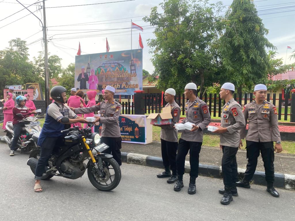Komandan Batalyon B Pelopor Satbrimob Polda Sulsel, Kompol Ramli menjelaskan, berbagi takjil ke pengguna jalan melintas yang menunggu waktu buka puasa. kegiatan yang dilakukannya untuk dukungan dan rasa menghargai sekaligsu untuk membantu umat muslim.