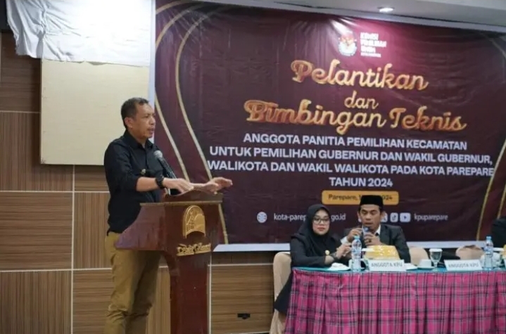 PAREPARE — Komisi Pemilihan Umum (KPU) Kota Parepare mengadakan pelantikan dan bimbingan teknis bagi anggota panitia pemilihan kecamatan (PPK) untuk pemilihan Gubernur dan Wakil Gubernur, serta Walikota dan Wakil Wali Kota Parepare tahun 2024.