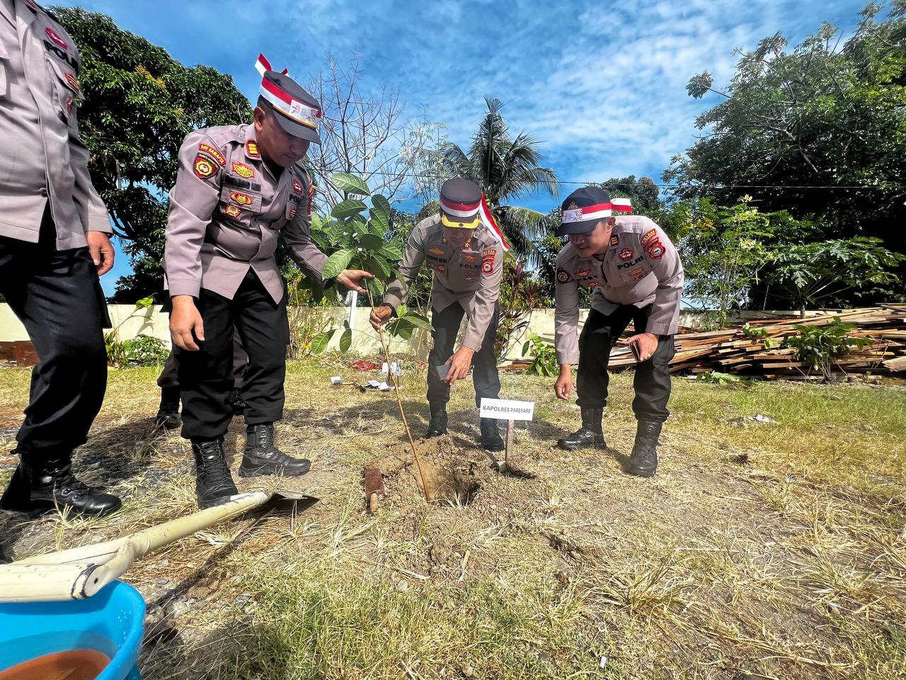 PAREPARE, VOICE SULSEL — Sebagai wujud dukungan terhadap pelestarian lingkungan, personel Polres Parepare, Sulawesi Selatan (Sulsel) beserta pengurus Bhayangkari, melakakukan penanaman 1.600 bibit pohon mahoni secara serentak di sejumlah titik di Kota Parepare, Rabu (23/1/8/2023).