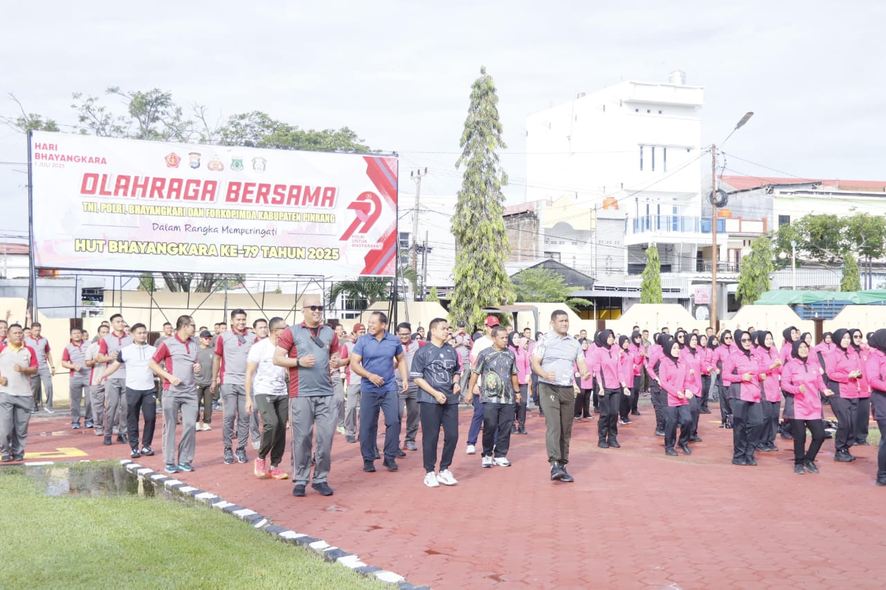 PINRANG – Dalam rangka menyambut Hari Bhayangkara ke-79 tahun 2025, Polres Pinrang menginisiasi kegiatan olahraga bersama yang melibatkan unsur TNI, Bhayangkari, dan jajaran Forkopimda Kabupaten Pinrang. Kegiatan berlangsung pada Sabtu pagi (21/6/2025) di Lapangan Apel Polres Pinrang, Jalan Bintang, Kecamatan Watang Sawitto, dan disambut antusias oleh seluruh peserta.