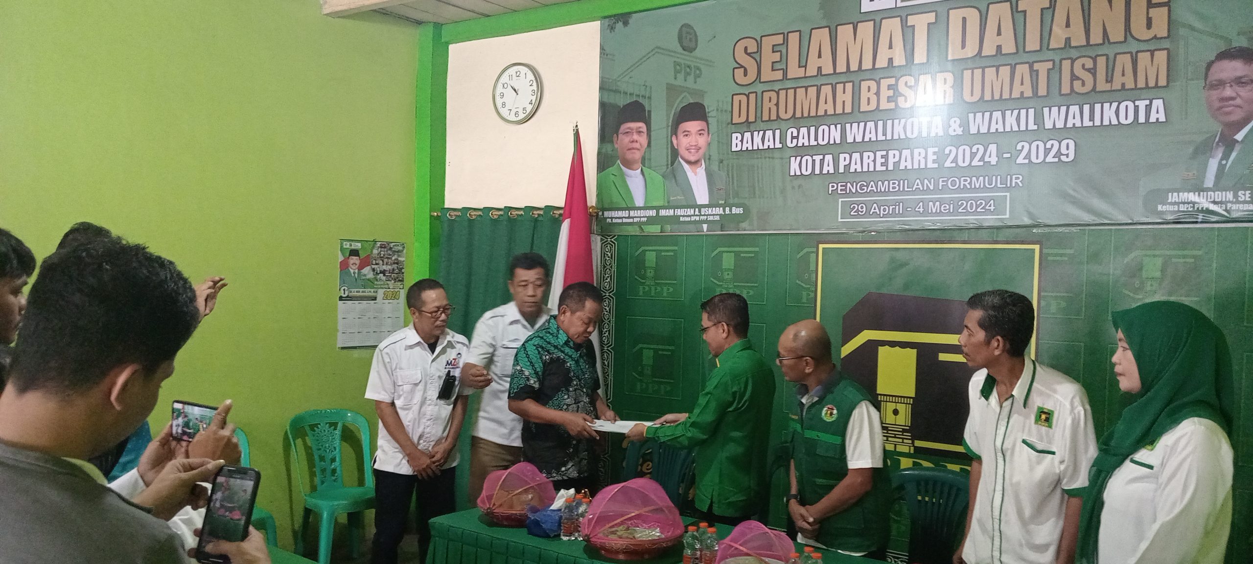 PAREPARE — Bakal Calon Walikota Parepare, Muhammad Zaini mengembalikan formulir pendaftaran Bacalon Walikota Parepare ke Partai Persatuan Pembangunan (PPP) Kota Parepare di Jalan Lahalede, Kamis 2 Mei 2024.