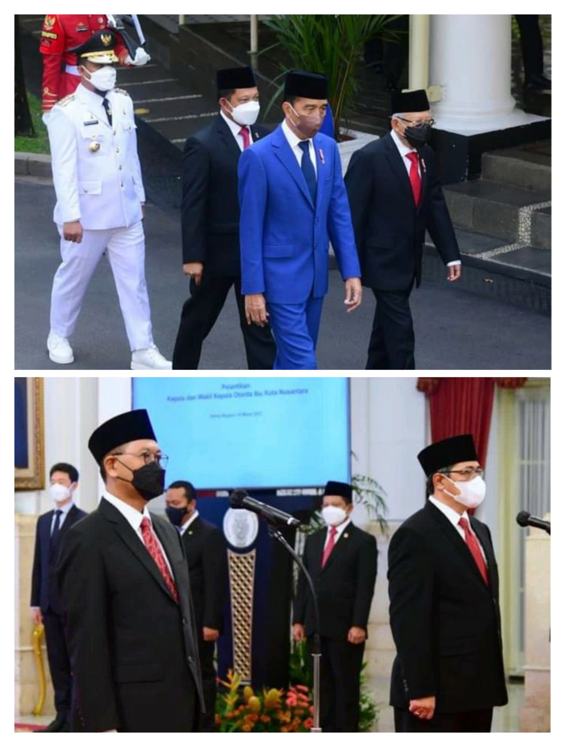 JAKARTA, VOICE SULSEL — Presiden RI Joko Widodo (Jokowi) melantik Bambang Susantono dan Dhony Rahajoe sebagai Kepala dan Wakil Kepala Otorita Ibu Kota Nusantara (IKN), di istana negara, Kamis 10 Maret 2022. Presiden mengatakan dua pasangan tersebut merupakan pilihan dan kombinasi yang baik. Menurutnya, Jokowi, kedua sosok tersebut juga memiliki rekam jejak yang baik.