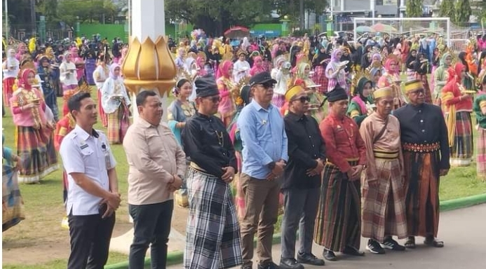Penjabat Wali Kota Parepare Akbar Ali bersama Kepala Dinas Pendidikan dan Kebudayaan (Disdikbud) Parepare HM Makmur, hadir langsung menyaksikan dan memberikan dukungan kepada para pelajar yang menari.