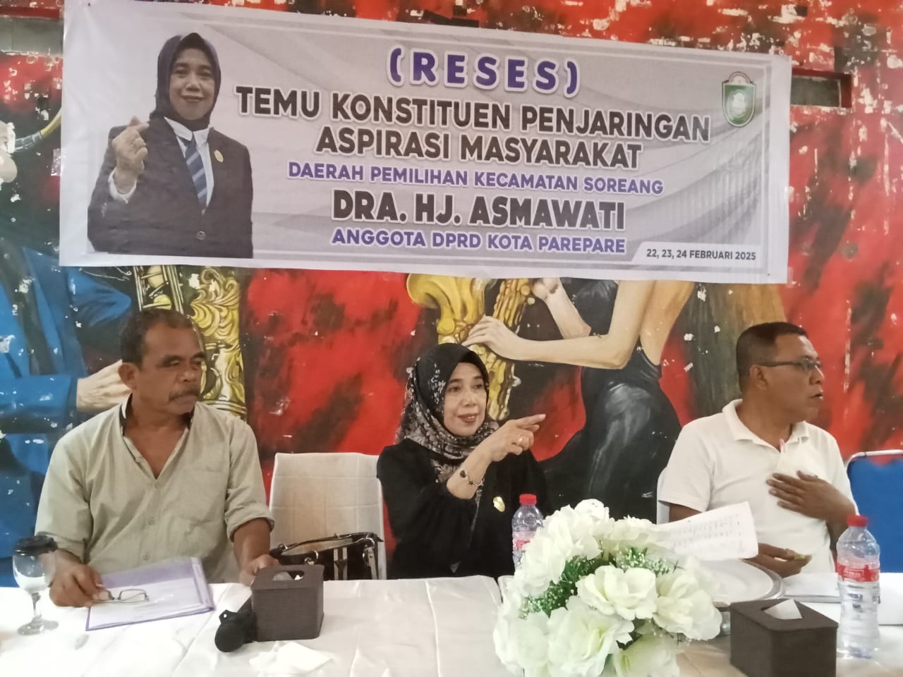 PAREPARE VOICESULSEL — Reses anggota DPRD Kota Parepare Hj Asmawati berlangsung di Kafe Lagota, Minggu 23 Februari 2025. Reses tersebut mengundang perwakilan warga dari Daerah Pemilihan Kecamatan Soreang yang menjadi basis massa Hj Asmawati.