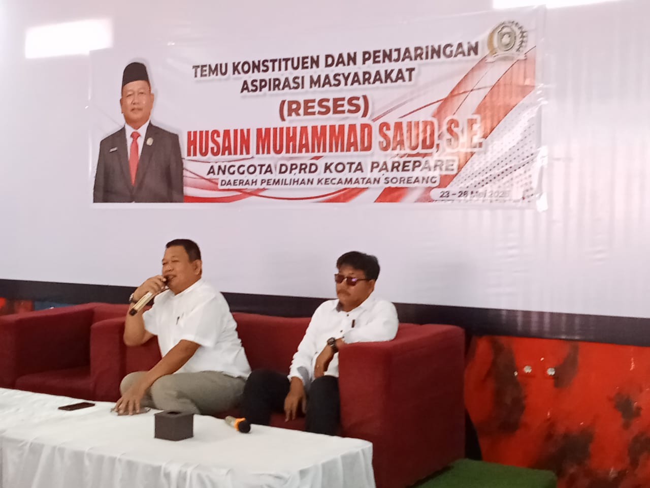 PAREPARE, VOICESULSEL — Anggota DPRD Kota Parepare dari Partai Gerindra, Husain Muhammad Saud, melaksanakan kegiatan reses di Cafe Lagota, Minggu (25/5/2025). Reses tersebut dihadiri oleh perwakilan warga dari Kecamatan Soreang.