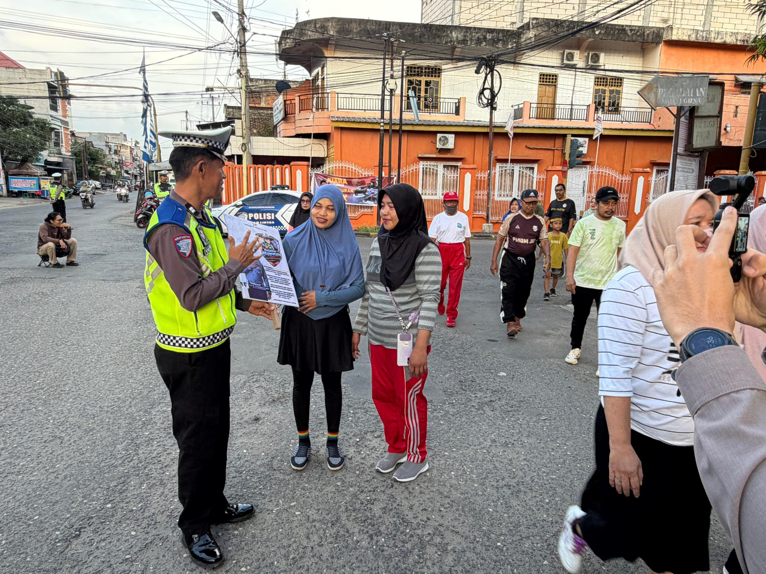 Petugas turut memberikan imbauan melalui papan bicara kepada masyarakat yang hadir, sekaligus menyampaikan edukasi mengenai pelaksanaan Operasi Keselamatan Pallawa 2026.