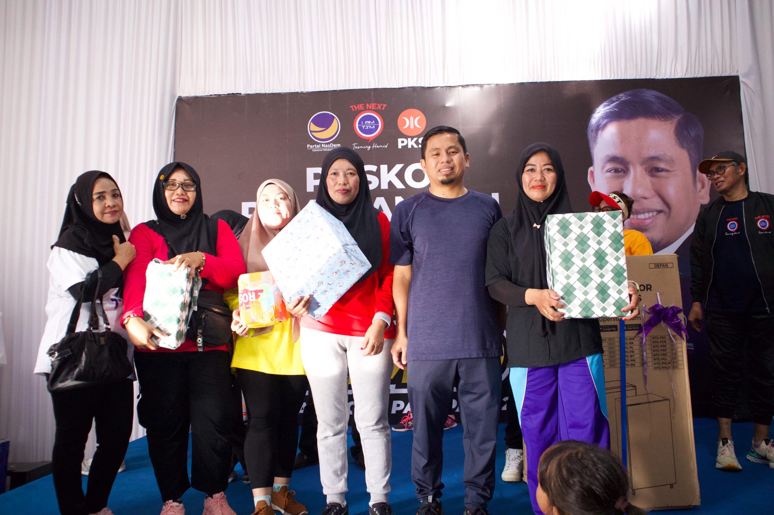 Bestie TSM merupakan komunitas relawan pemenangan Tasming Hamid yang diisi kaum hawa, mulai dari emak-emak, milenila hingga gen-z yang setiap minggunya aktif dalam kegiatan senam zumba. Senam kali ini terasa lebih meriah karena peserta berkesempatan mengikuti undian door prize dengan hadiah utama berupa lemari es.