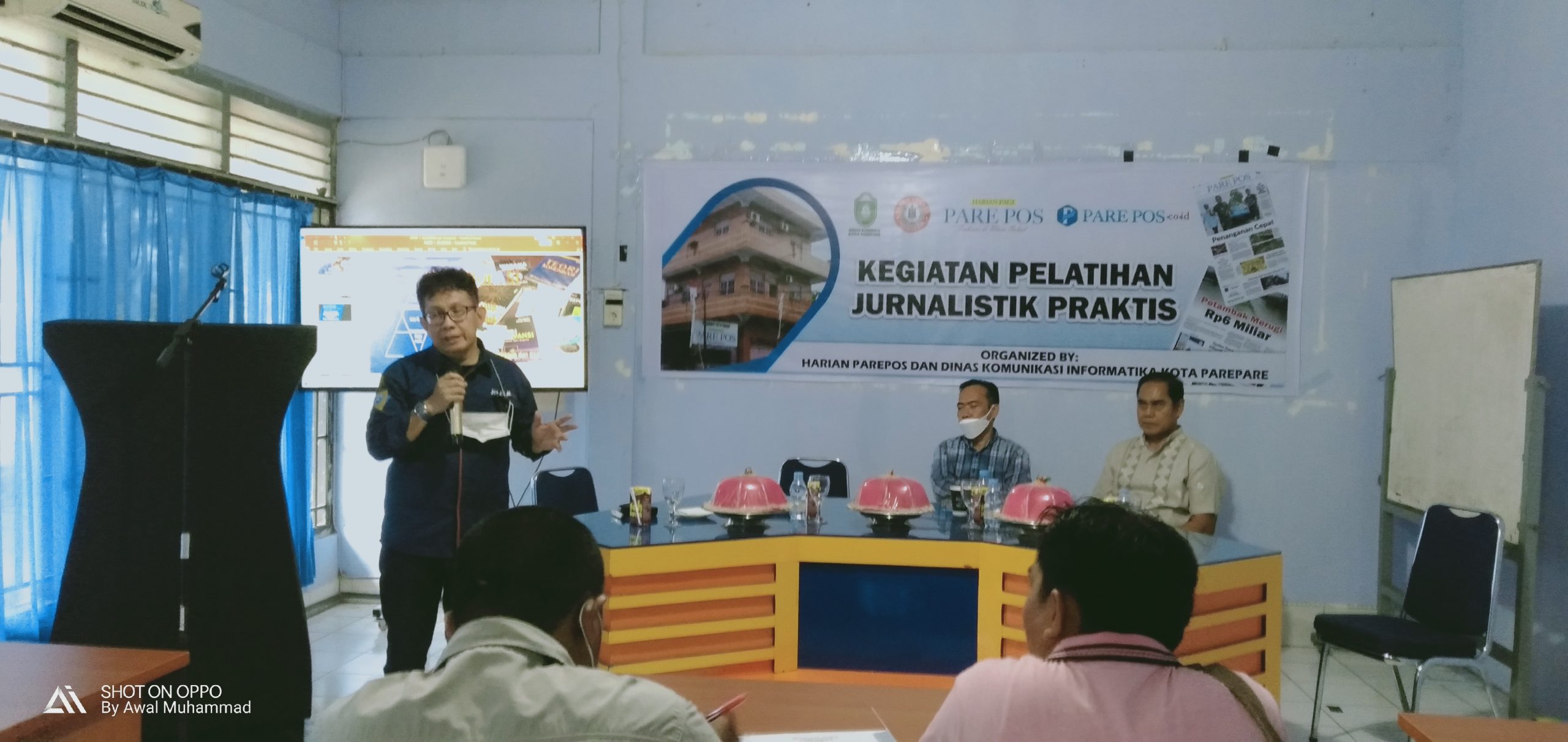 PAREPARE, VOICESULSEL — Pelatihan Jurnalistik Praktis yang digelar Harian Parepos, Parepos.co.id bekerjasama dengan Dinas Komunikasi dan Informasi Kota Parepare menghadirkan salah satu pemateri yang cukup dikenal dikalangan pers PWI dan Fajar Group.