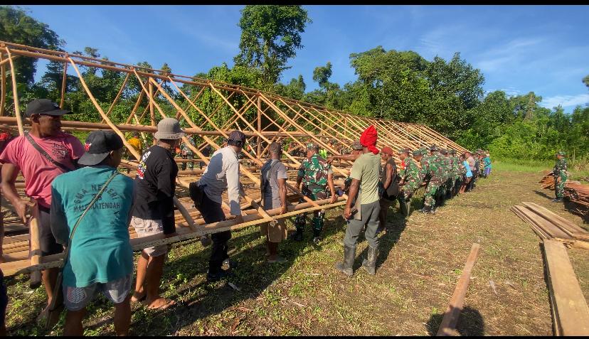 Di lokasi, anggota TNI-Polri bersama warga bergotong royong memasang tiang, atap, mengangkat batu, hingga mengambil kayu. Dandim menyebut bahwa bangunan sekolah ini akan berdiri secara bertahap, dengan pemasangan dinding yang akan dilakukan oleh personel Koramil Wahai dan masyarakat setempat.
