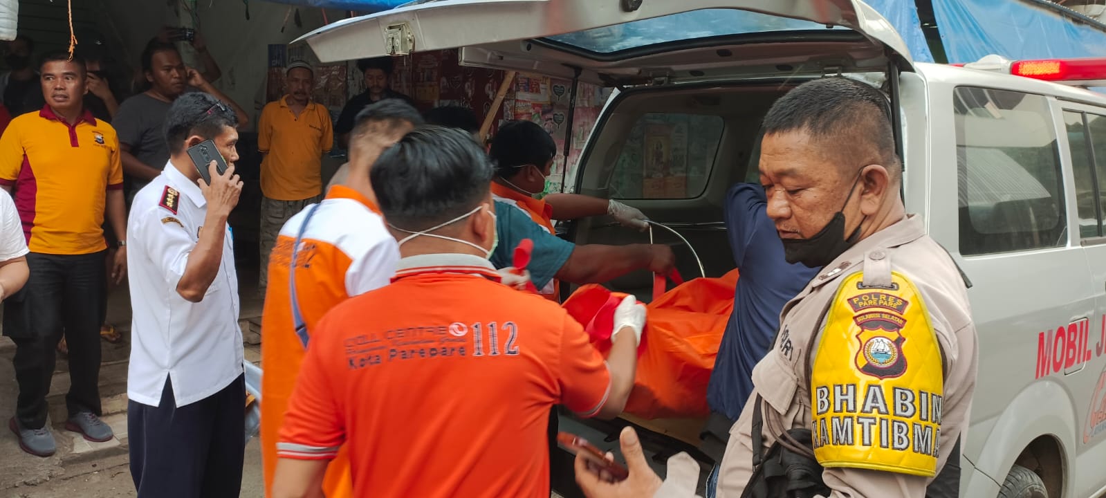 Setelah tim inafis Satuan Reskrim Polres Parepare melakukan pengolahan TKP, selanjutnya mayat dibawa ke Rumah Sakit Andi Makkasau Parepare.