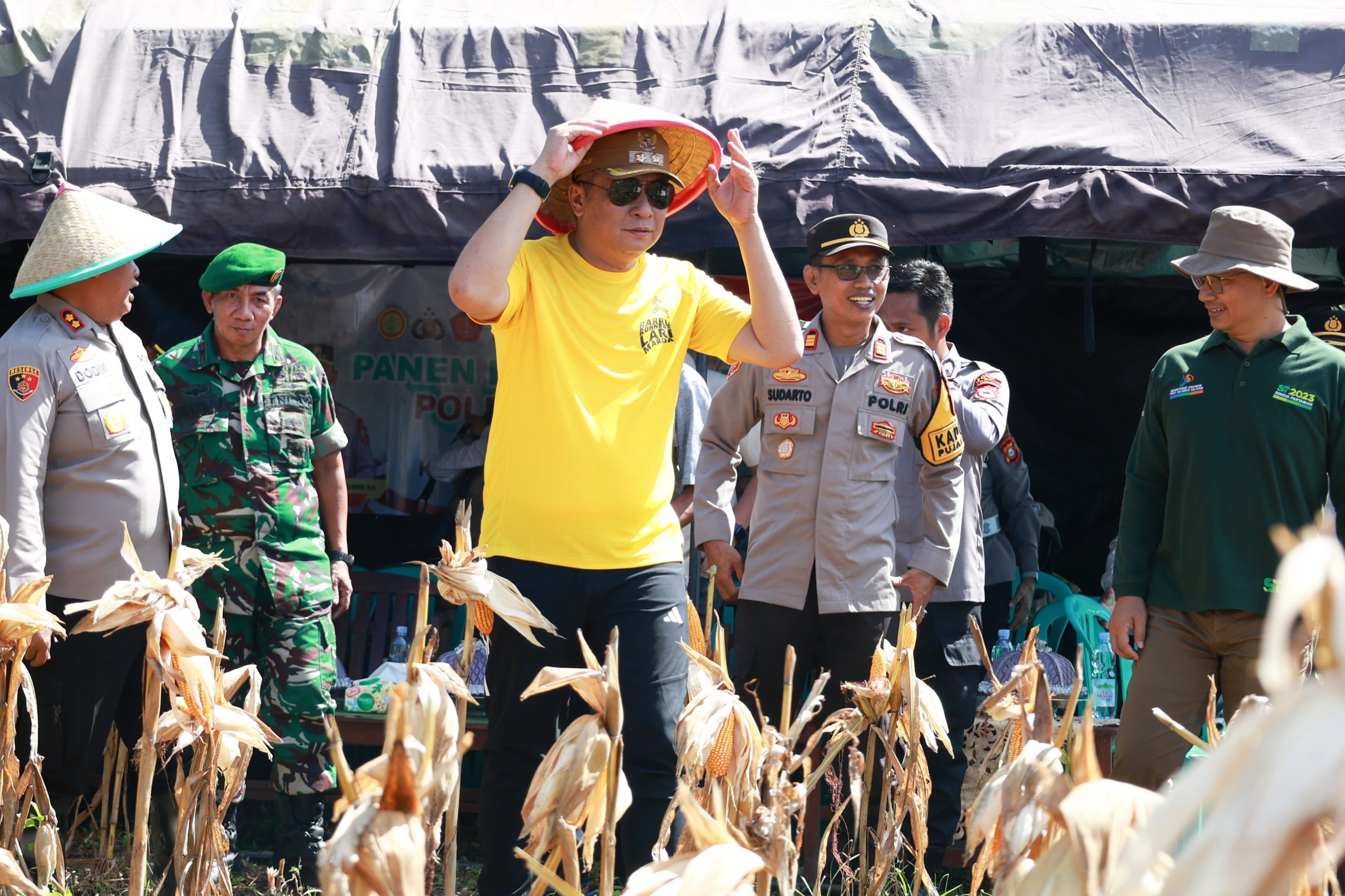 Panen raya jagung secara simbolis dilakukan Wakil Bupati Barru bersama Wakil Ketua II DPRD Barru. Kapolres Barru Pabung Kodim 1405/Parepare.